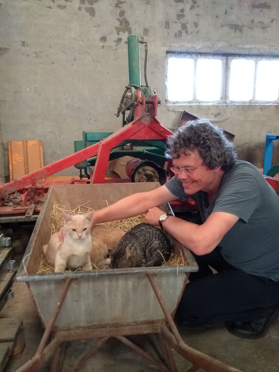 Young cats in a wheelbarrow (photo by Laura).