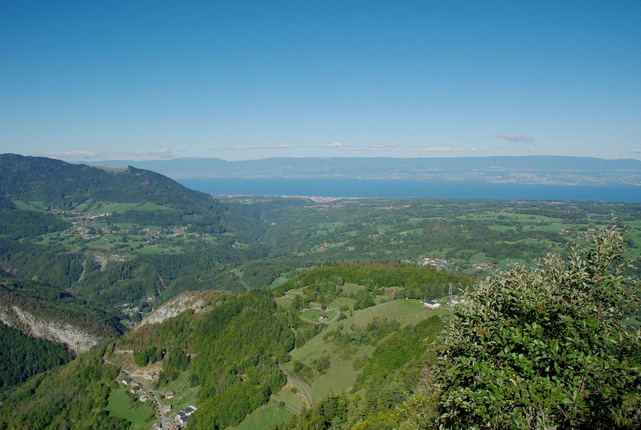 View to the north: Lake Geneva. The town on the shore is Évian-les-Bains.