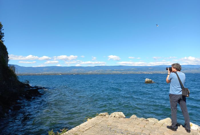 Me in Yvoire, on Lake Geneva (photo by Laura). I've brushed some tourists out of the background.