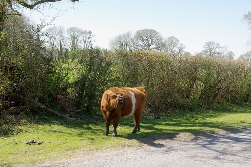 Cow in the road and in the way.