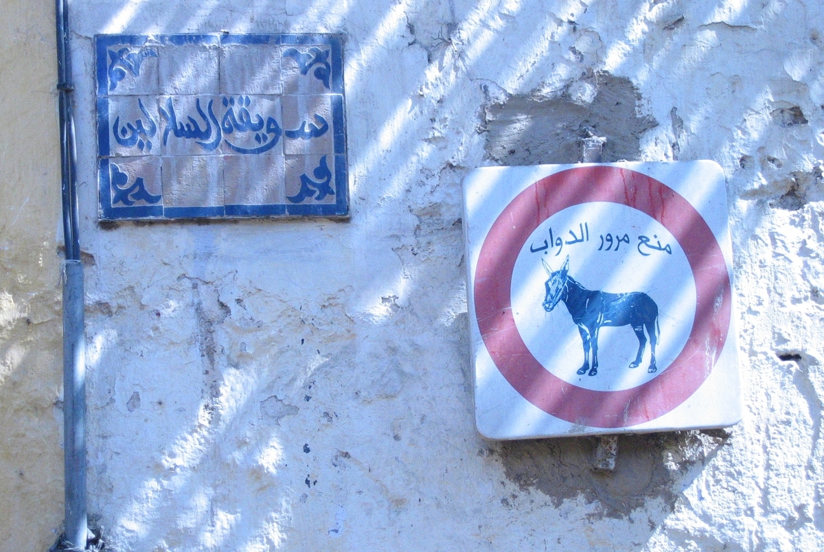 This donkey sign is in Fes's medina. Apparently it doesn't mean Forbidden for donkeys, but rather Watch out for donkeys.