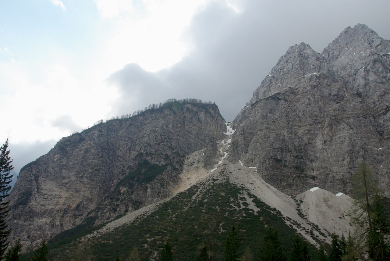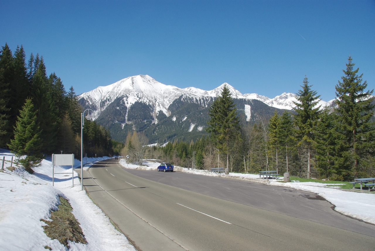 On our second night we are in the mountains, in a hotel on a pass that is not yet open this early in the year, the Sölk Pass in the middle of Austria. There are hardly any people here. This photo shows the view from our balcony.
